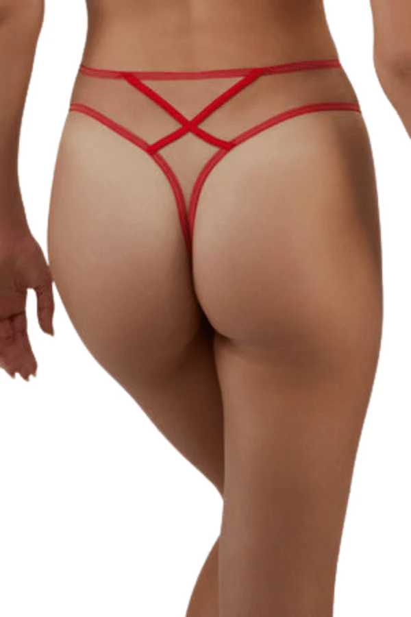 Ramona Mesh High Waisted Thong - Red